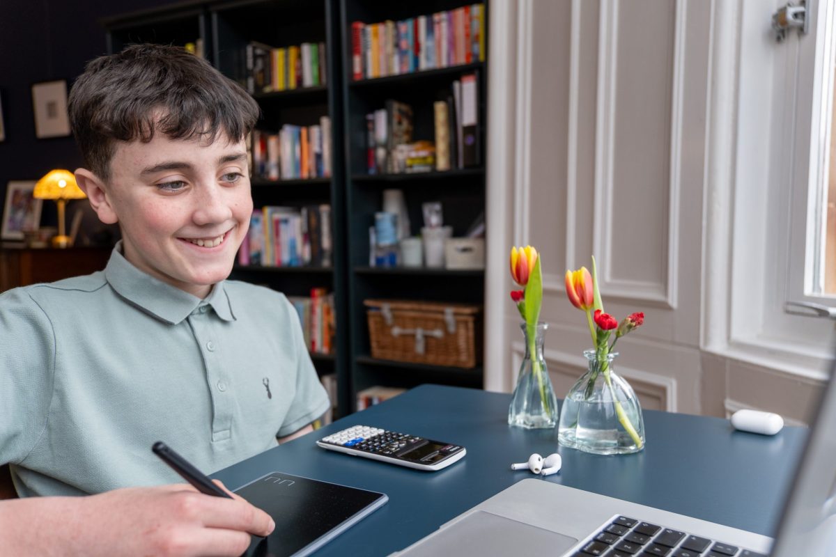 Students join lessons using familiar video platforms and shared digital whiteboards. All that’s needed is an iPad/Android tablet or a laptop/desktop with a graphics tablet.